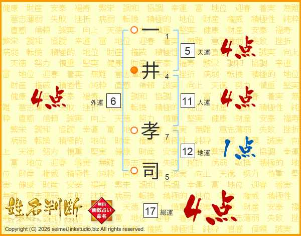 一(1画)井(4画) 孝(7画)司(5画)