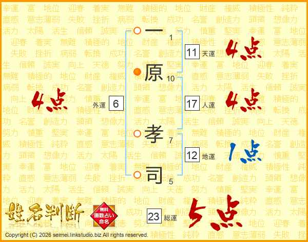 一原孝司さんの総運は23画の5点!