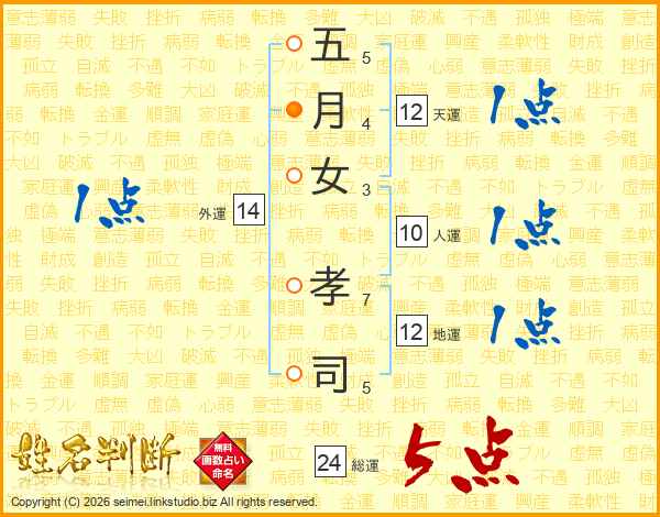 五月女孝司さんの総運は24画の5点!