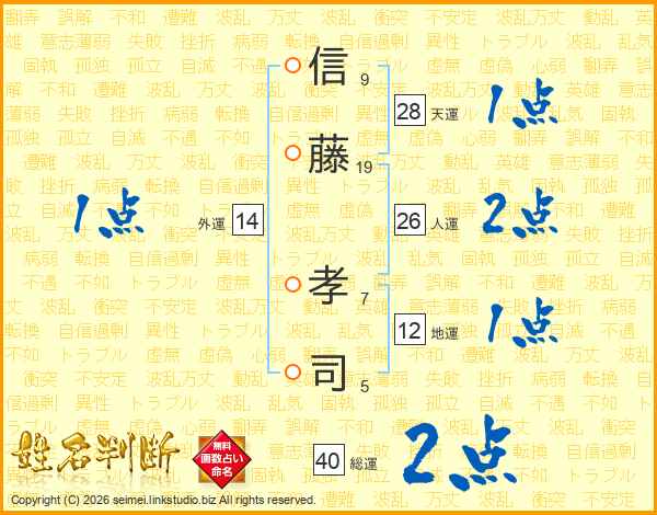 信藤孝司さんの人運は26画の2点!