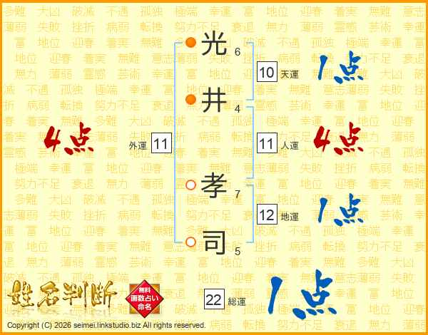 光(6画)井(4画) 孝(7画)司(5画)