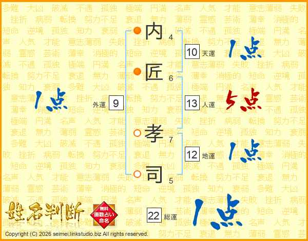 内匠孝司さんの人運は13画の5点!