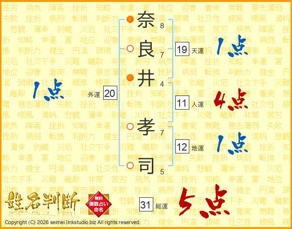 奈(8画)良(7画)井(4画) 孝(7画)司(5画)