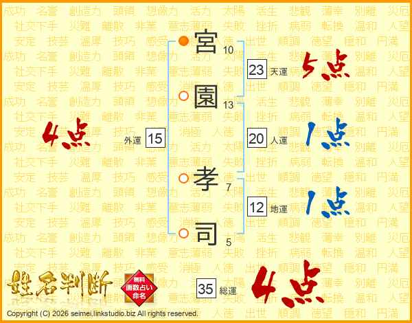 宮園孝司さんの総運は35画の4点!