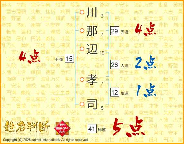 川那辺孝司さんの総運は41画の5点!