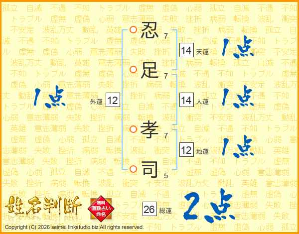 忍足孝司さんの総運は26画の2点!