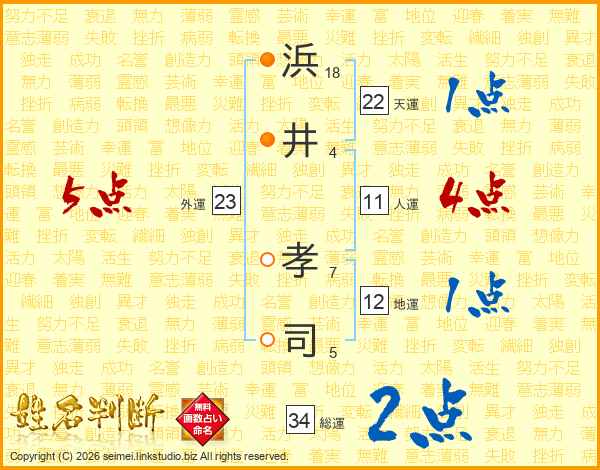 浜(18画)井(4画) 孝(7画)司(5画)