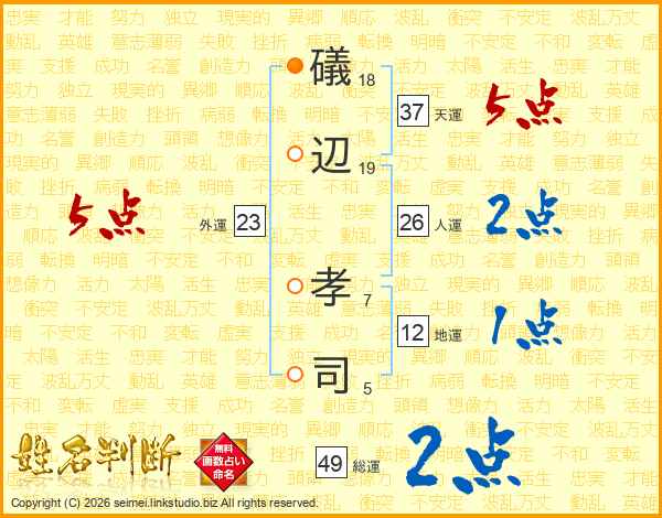 礒辺孝司さんの天運は37画の5点!