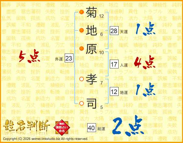 菊地原孝司さんの人運は17画の4点!