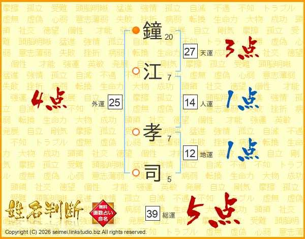 鐘(20画)江(7画) 孝(7画)司(5画)