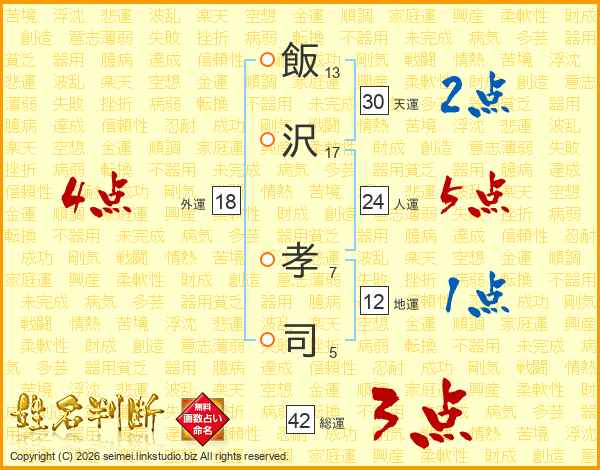 飯沢孝司さんの天運は30画の2点!