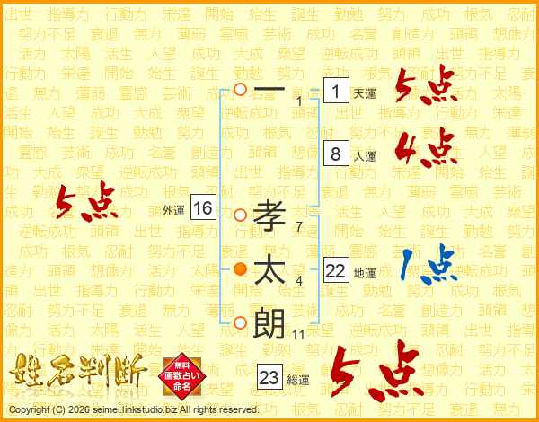 一孝太朗さんの総運は23画の5点!