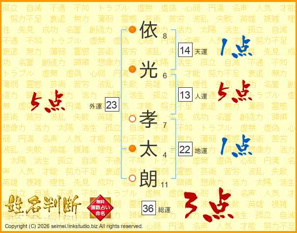 依(8画)光(6画) 孝(7画)太(4画)朗(11画)