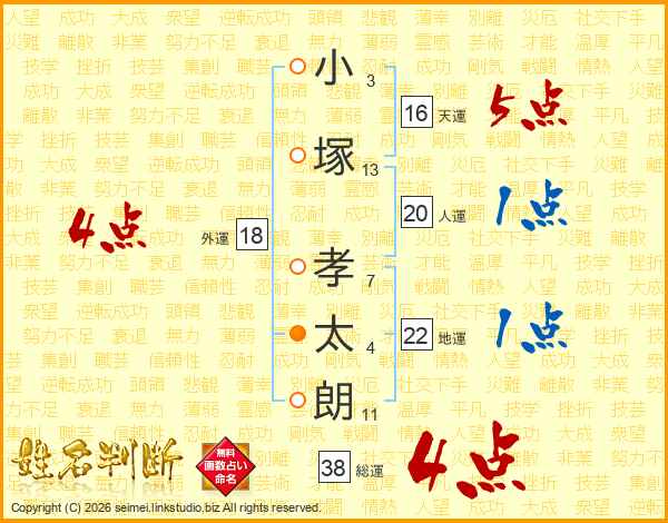 小塚孝太朗さんの総運は38画の4点!