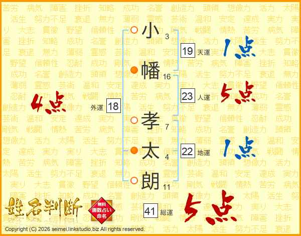 小幡孝太朗さんの総運は41画の5点!
