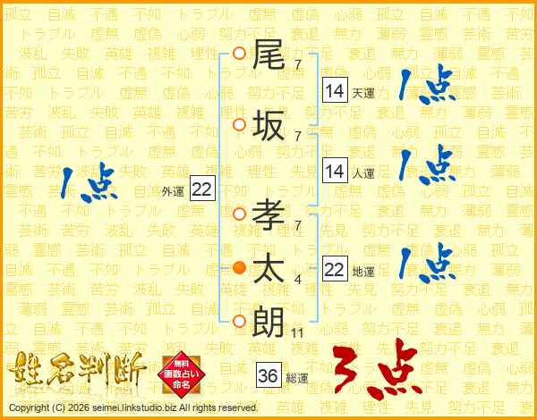 尾坂孝太朗さんの人運は14画の1点!