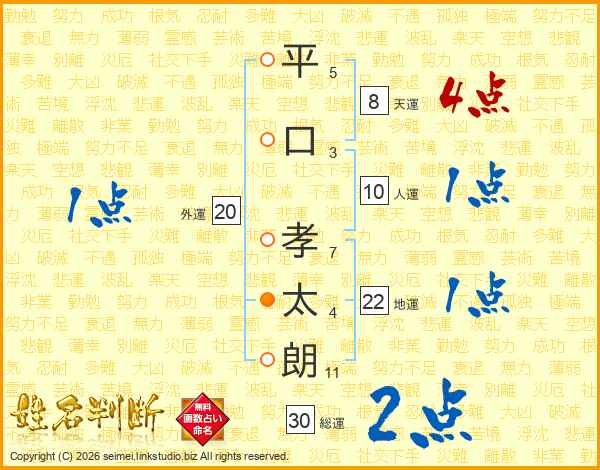 平口孝太朗さんの総運は30画の2点!