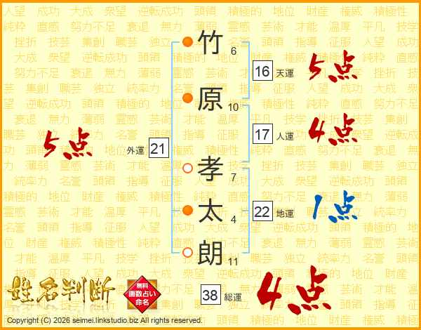 竹原孝太朗さんの総運は38画の4点!