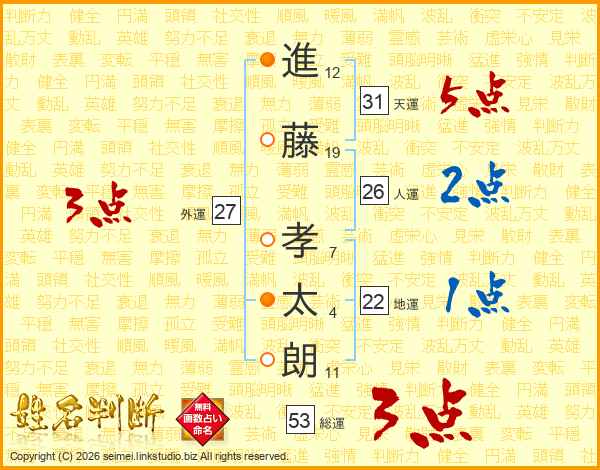 進藤孝太朗さんの天運は31画の5点!
