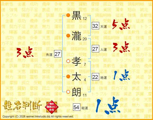 黒瀧孝太朗さんの天運は32画の5点!