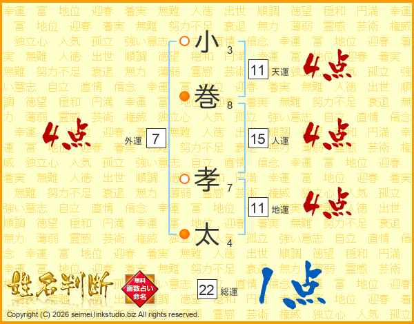 小巻孝太さんの総運は22画の1点!
