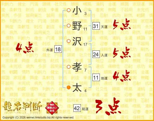 小野沢孝太さんの人運は24画の5点!