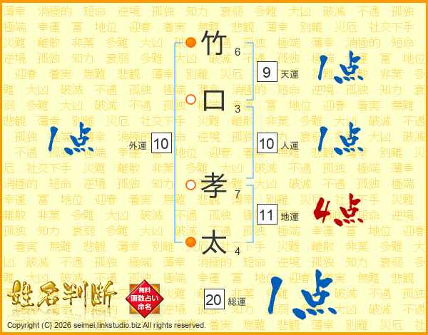 竹口孝太さんの地運は11画の4点!
