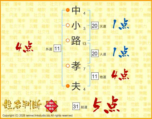 中小路孝夫さんの総運は31画の5点!