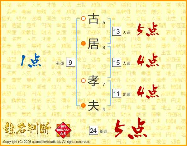 古居孝夫さんの総運は24画の5点!