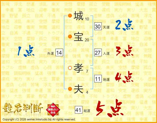城宝孝夫さんの総運は41画の5点!