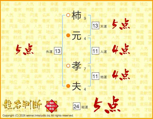 柿元孝夫さんの総運は24画の5点!