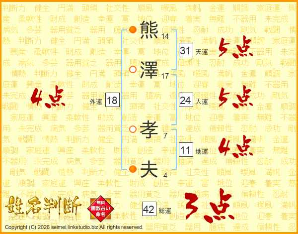 熊澤孝夫さんの地運は11画の4点!