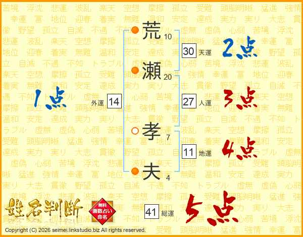 荒瀬孝夫さんの天運は30画の2点!