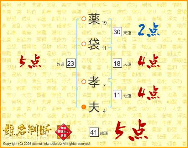 薬袋孝夫さんの総運は41画の5点!
