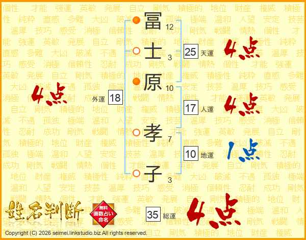 冨士原孝子さんの総運は35画の4点!