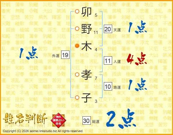 卯野木孝子さんの人運は11画の4点!