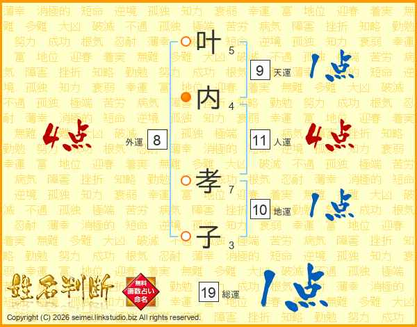 叶内孝子さんの人運は11画の4点!