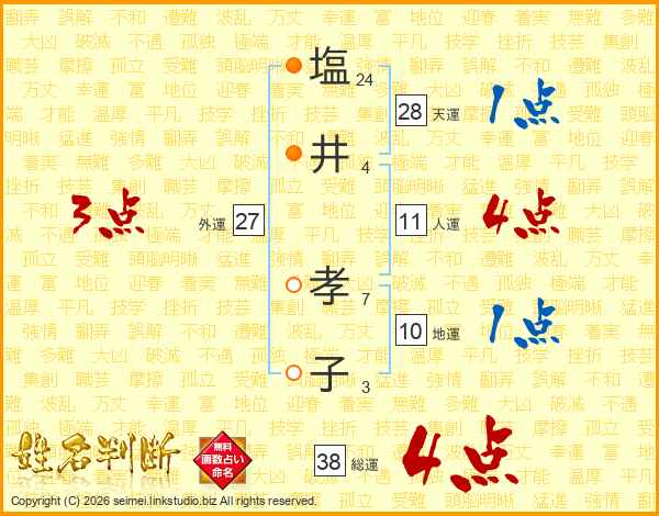 塩(24画)井(4画) 孝(7画)子(3画)