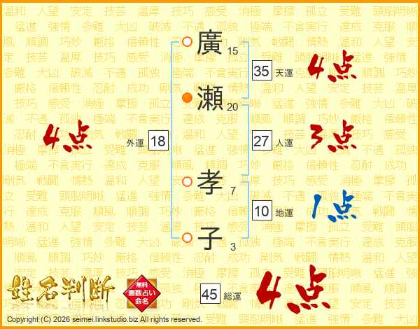 廣瀬孝子さんの総運は45画の4点!