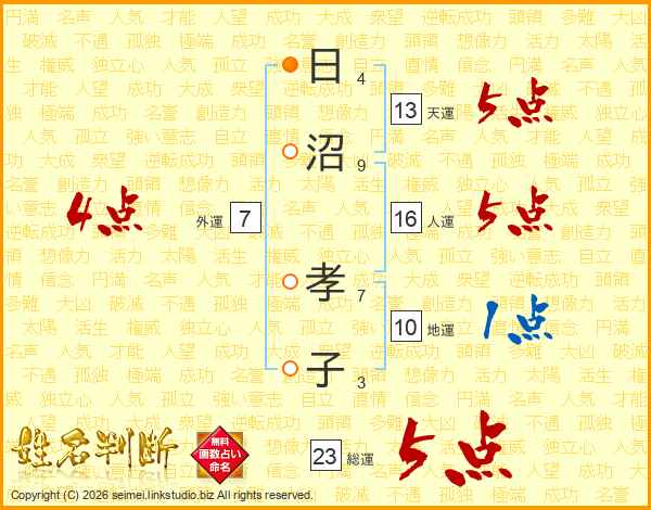 日(4画)沼(9画) 孝(7画)子(3画)