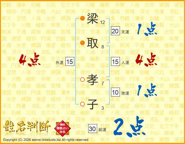 梁取孝子さんの総運は30画の2点!