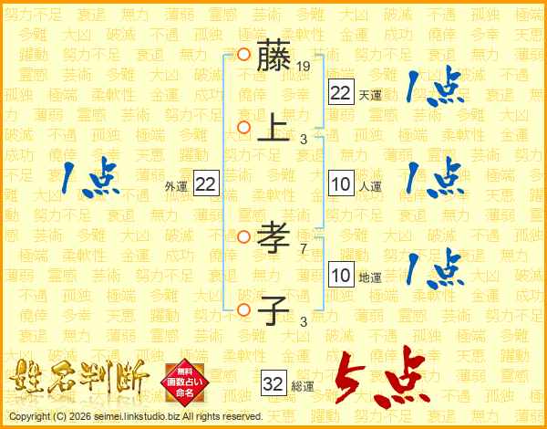 藤上孝子さんの総運は32画の5点!