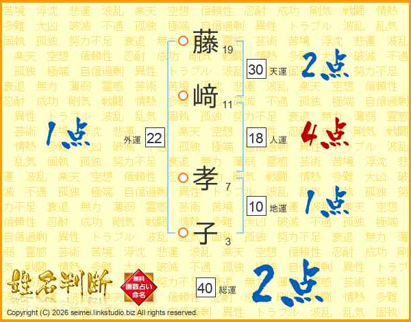 藤(19画)﨑(11画) 孝(7画)子(3画)