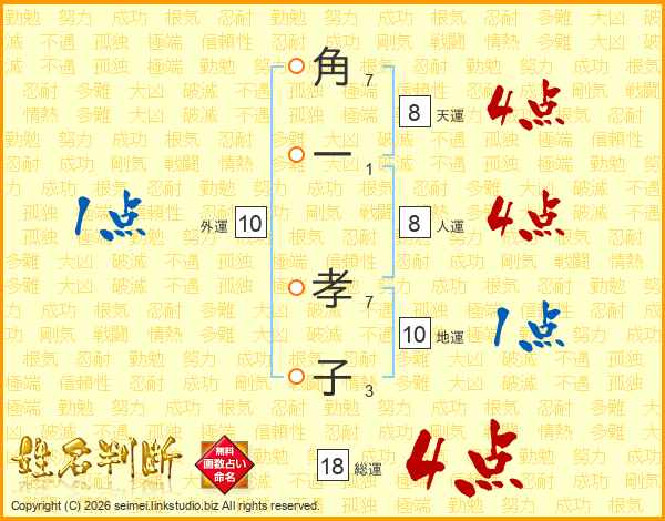 角一孝子さんの総運は18画の4点!