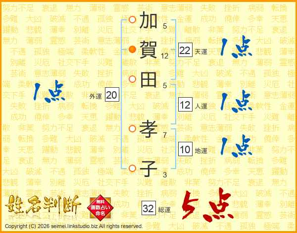 加賀田孝子さんの総運は32画の5点!