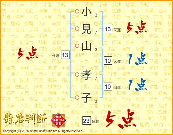 小(3画)見(7画)山(3画) 孝(7画)子(3画)