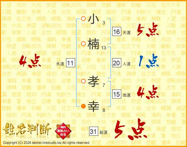 小楠孝幸さんの総運は31画の5点!