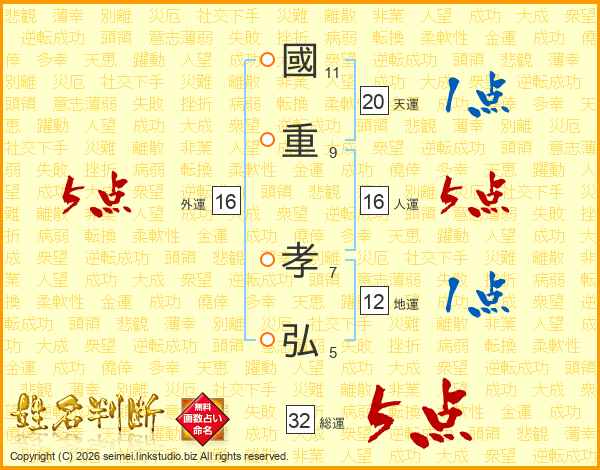 國重孝弘さんの総運は32画の5点!
