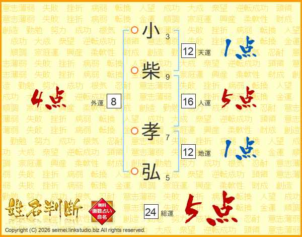 小柴孝弘さんの総運は24画の5点!