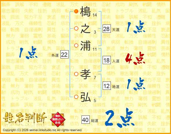 槝(14画)之(3画)浦(11画) 孝(7画)弘(5画)